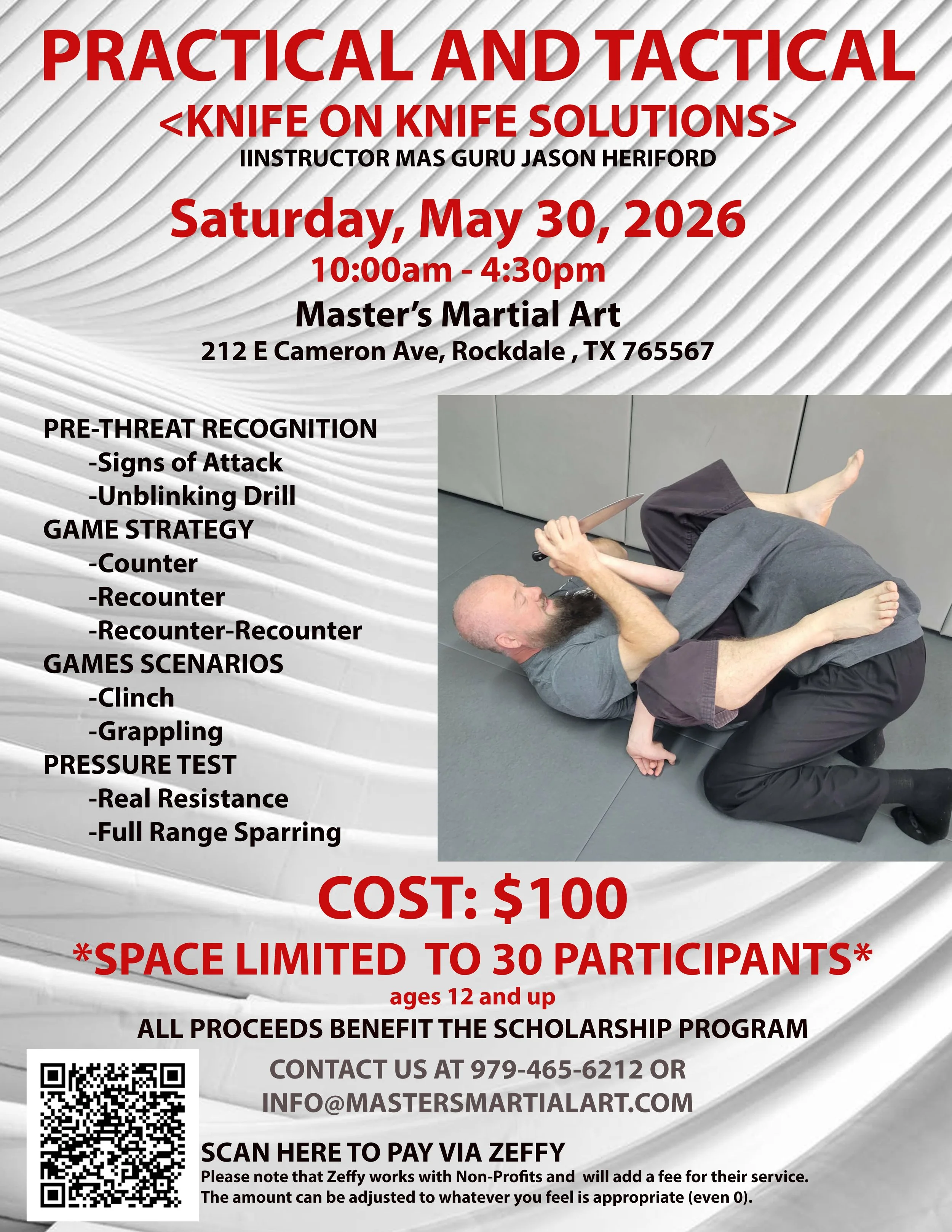 Practical andTactical Saturday, May 30, 202610am-4:30 pmCost: $100 *space is limited to 30 participants* Contact for more info NEXT UPCOMING SEMINARSCHEDULED FOR SATURDAY, AUGUST 22, 2025CHECK BACK SOON FOR ADDITIONAL DETAILSPLEASE NOTE **SCHOOL SAFETY AND WOMEN’S SELF-DEFENSE CLASSES CAN BE SCHEDULED BY GROUPS WITH 10 OR MORE INTERESTED PERSONS IN EITHER SEMINAR - PLEASE CONTACT THE OFFICE FOR MORE DETAILS.** Previous Seminars